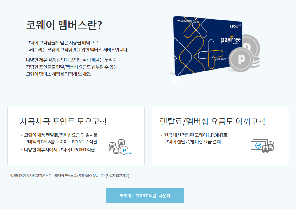 코웨이 렌탈 멤버쉽 2020-05-20 첨부파일 payfree.jpg : 294.6 M, 코웨이 주요 고객사 생활의 코웨이, 지속적인 품질의 고급화와 기술력 혁신을 통하여 글로벌 기업으로서 비전을 실현해가고 있습니다. 1588-5397 고객님께 가장 알맞은 제품으로친절하게 상담드리겠습니다.